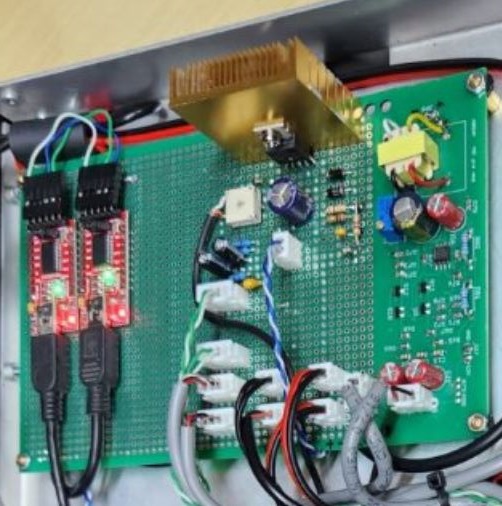 Here the internal view. The Hermes-Lite SDR is located underneath the green prototype board.